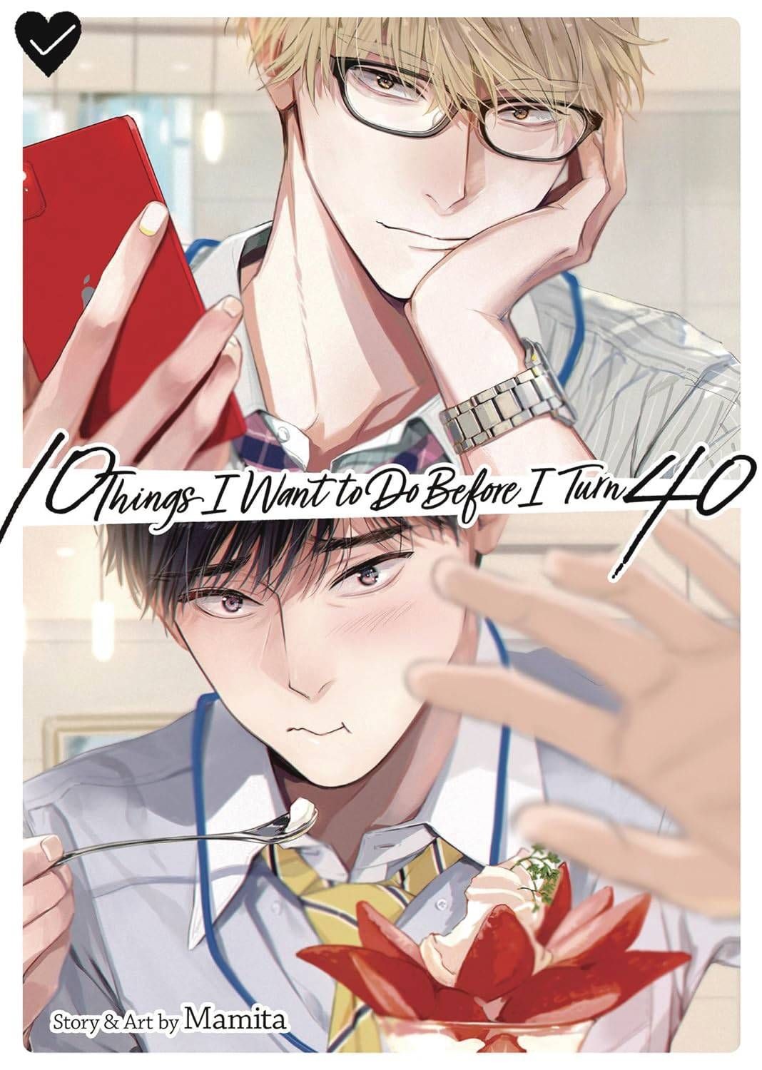 Suzume Tojo is just three months away from turning forty and realizes there's so much he hasn't done with his life! So, he makes a plan: create a private list of things he's always wanted to do and check them off before turning the big four-oh. It's a rather simple list, filled with goals that should be easy to accomplish, like a takoyaki party, enjoying a parfait out in a cafe, and spending his birthday with a lover. Except, that last one comes with a major problem-Tojo hasn't had a lover in ten years! But when Keishi Tanaka, Tojo's handsome junior at the company, discovers the secret list, he's determined to help Tojo check off every single item-starting with the 'lover' part! A fun, sexy BL romp between an assertive junior colleague and a senior past his prime!