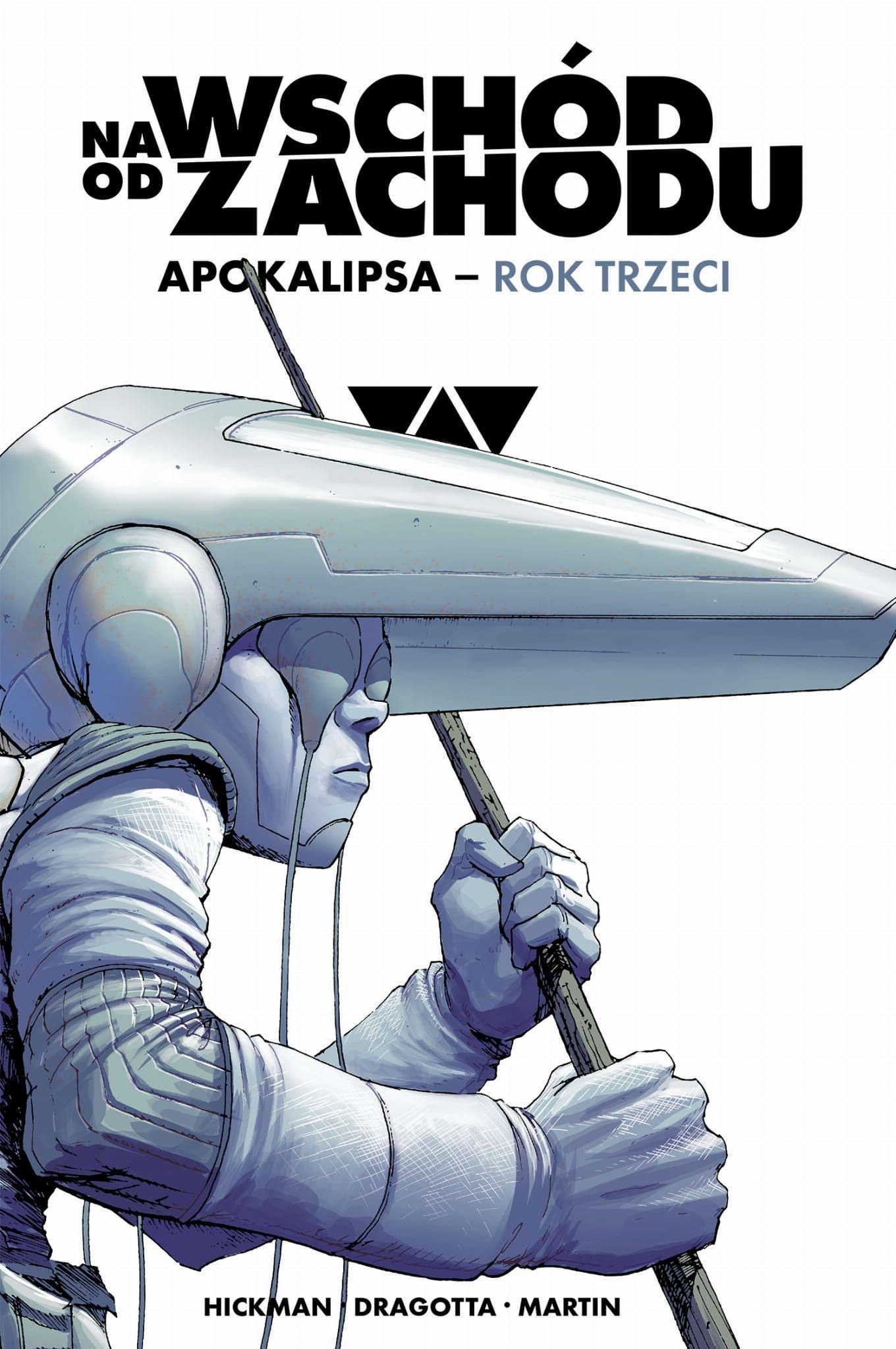 NA WSCHÓD OD ZACHODU: APOKALIPSA – ROK TRZECI to ekscytujący, choć krwawy finał opowieści stanowiącej mozaikę gatunków: fantastycznonaukowego westernu, politycznego technothrillera i wreszcie horroru sięgającego po motywy ze starożytnych wierzeń. Jej autorem jest Jonathan Hickman (X-Men, Avengers, Fantastyczna Czwórka), uznany za jednego z najbardziej pomysłowych scenarzystów komiksowych ostatniego dziesięciolecia.